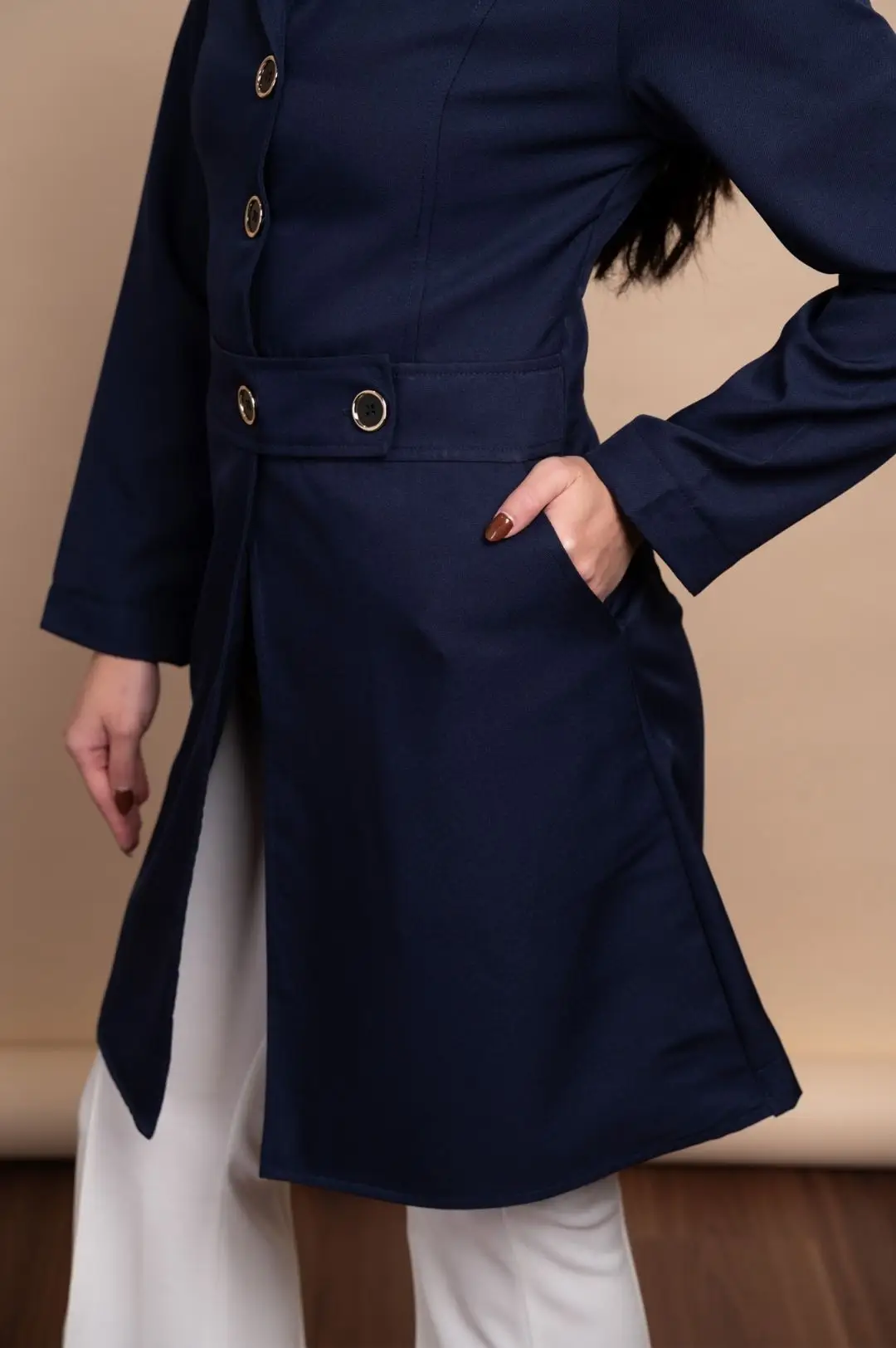 Com gola e bolsos laterais embutidos, o Jaleco Elisa modela bem a cintura, proporcionando um caimento perfeito. Os botões com detalhes em dourado acrescentam um toque sofisticado ao visual. A abertura frontal facilita a movimentação, tornando-o prático para o dia a dia.