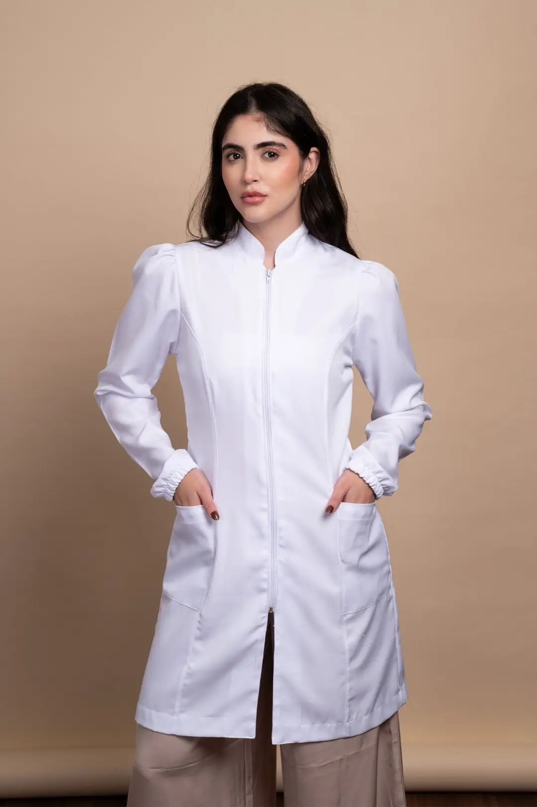 Jaleco Feminino com manga Bufante é perfeito para profissionais que desejam unir estilo, conforto e durabilidade em um único produto.